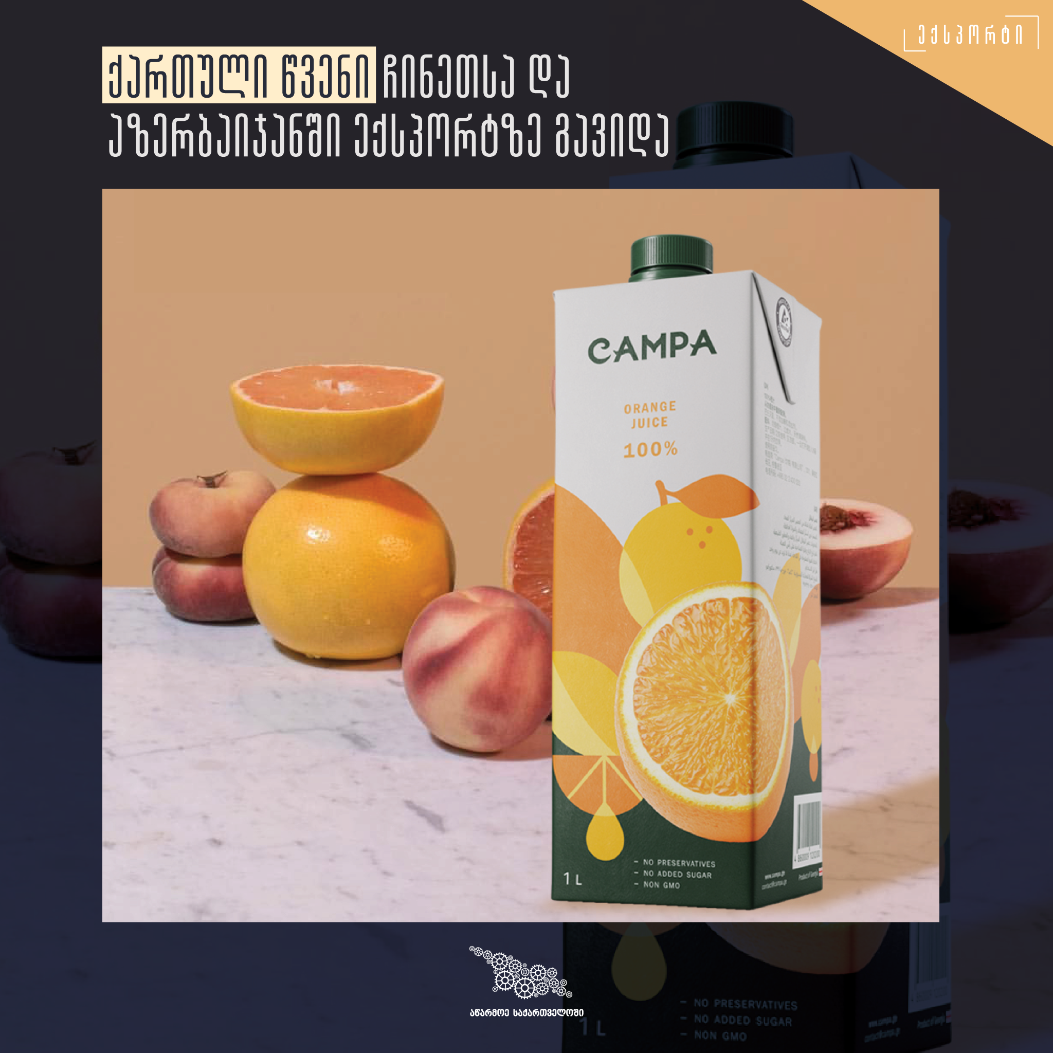 სააგენტოს „აწარმოე საქართველოში“ მხარდაჭერით, ქართული წვენი "კამპა" ჩინეთსა და აზერბაიჯანში ექსპორტზე გავიდა.